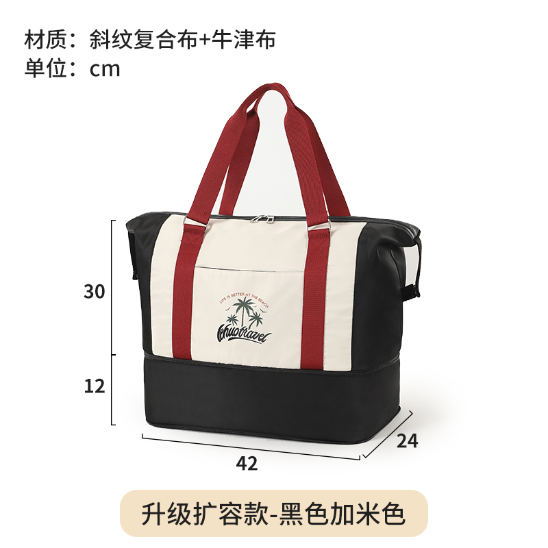 行李袋旅行包短途女轻便手提大容量出差登机旅游健身待产包收纳袋 升级扩容款-黑色加米色