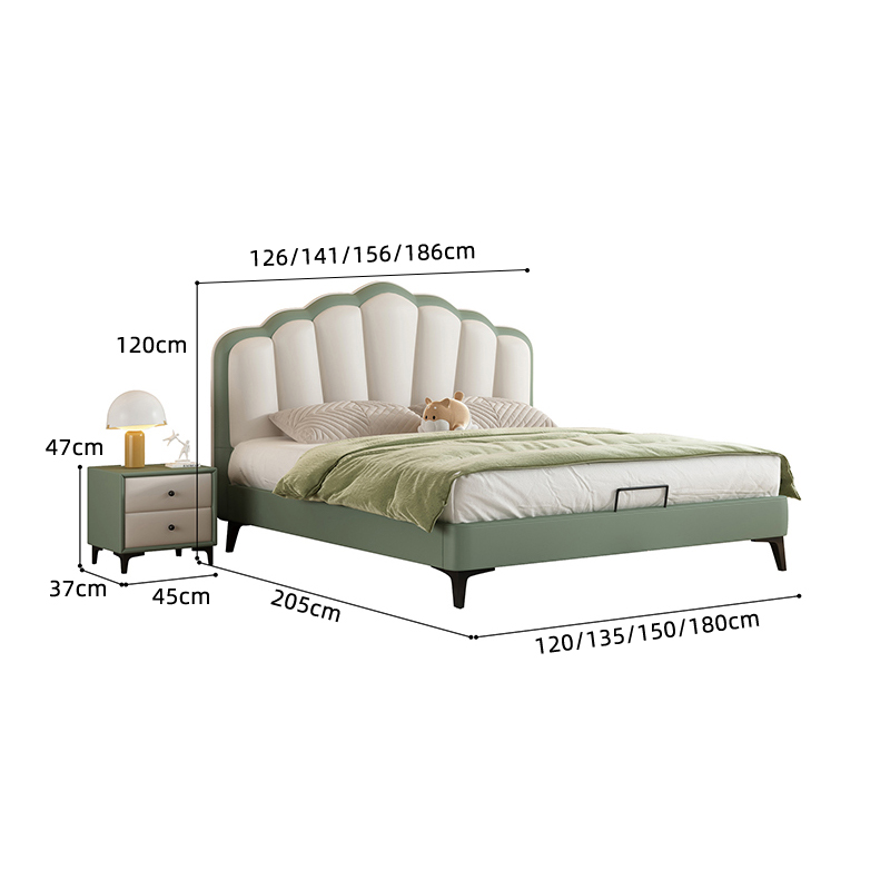 【苏宁直营】贝壳床小孩软包男孩女孩床粉色轻奢奶油风儿童房公主床 1.5*2.0米 全拆驼绒独立袋床垫【2面可睡3睡感】+2柜