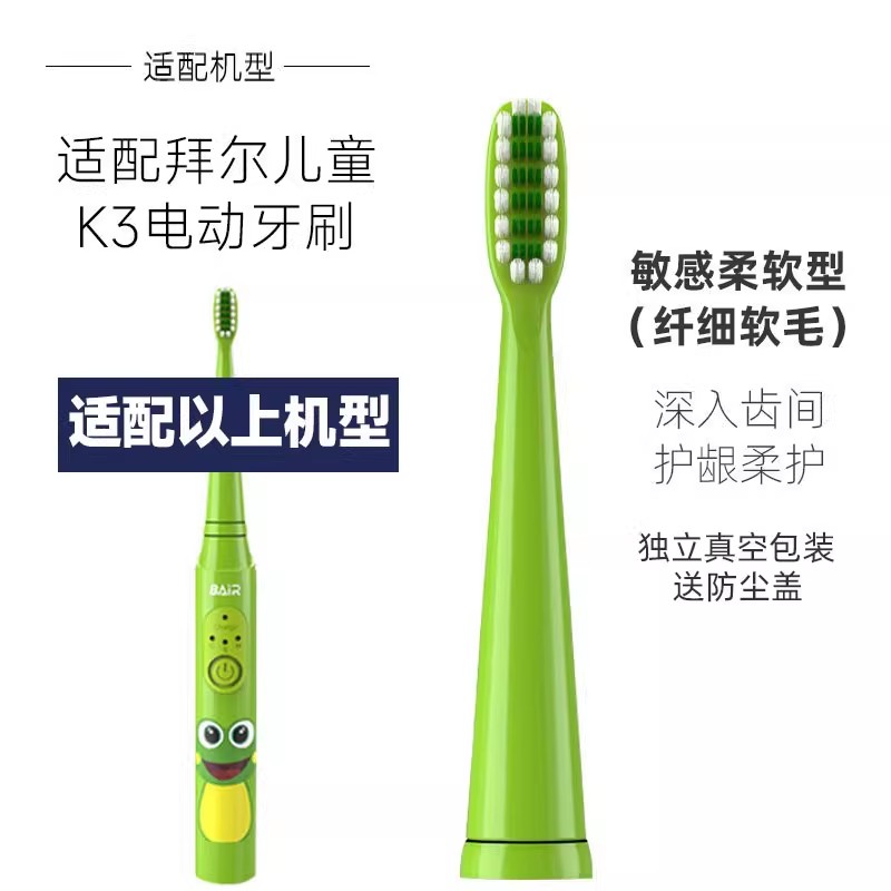 适配拜尔儿童电动牙刷头BAIR软毛K3/K5/K7护龈刷毛拜耳小孩替换头 【K3专用】绿色6支