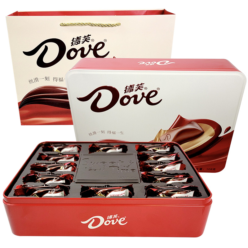 德芙丝滑牛奶巧克力108g铁盒散装结婚喜糖圣诞礼物节日生日礼盒装 德芙礼盒108g*1盒(含24颗)