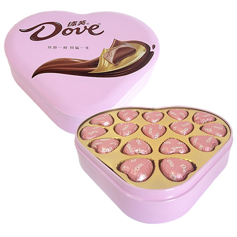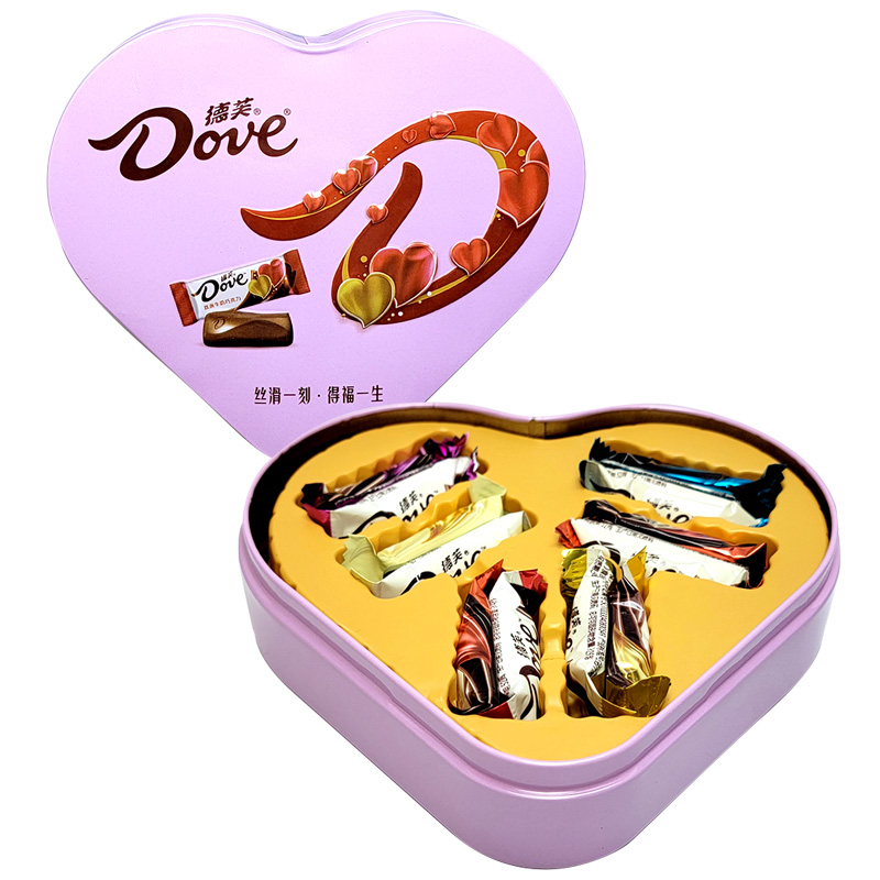 德芙丝滑牛奶巧克力6-18颗礼盒装铁盒装诞生礼伴手礼婚庆结婚喜糖 心语5.3g*16粒粉色心形