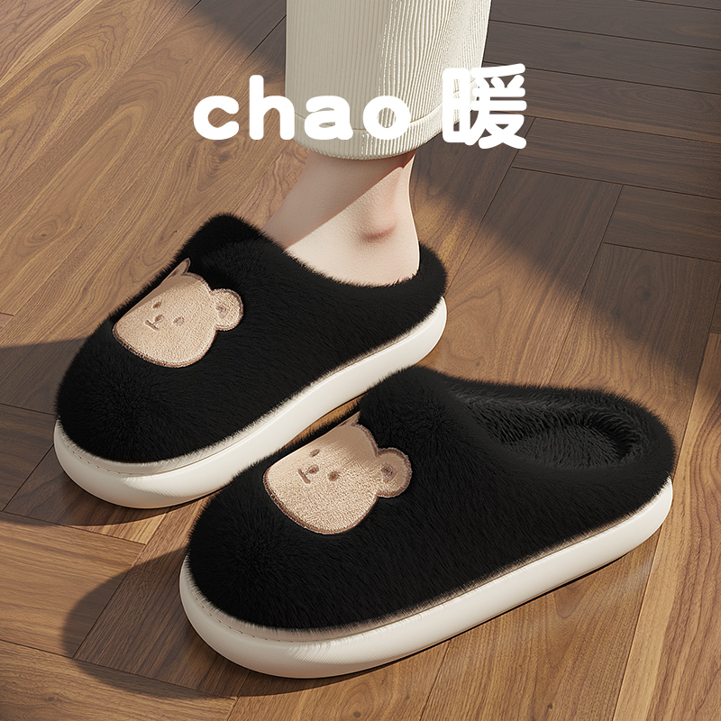 踩屎感棉拖鞋女士冬季2024新款室内家居厚底防滑保暖加绒家用棉拖 黄色【厚底舒适】 3839【适合37-38脚穿】内长230