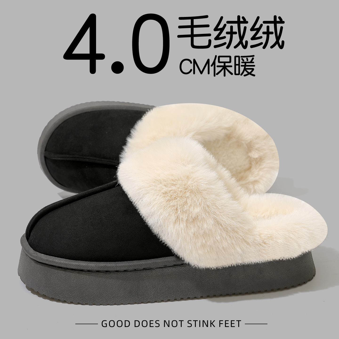 棉拖鞋女款包跟冬季2025新款室内家居勃肯鞋厚底加绒保暖棉鞋外穿 黑色【勃肯加绒】 40-41标准码【内长25cm】
