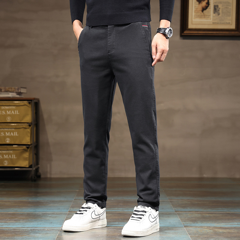 自营 跨境裤子男加绒时尚简约修身长裤男款防风舒适抗寒休闲裤男士 33(2尺6)150斤 9802黑色常规