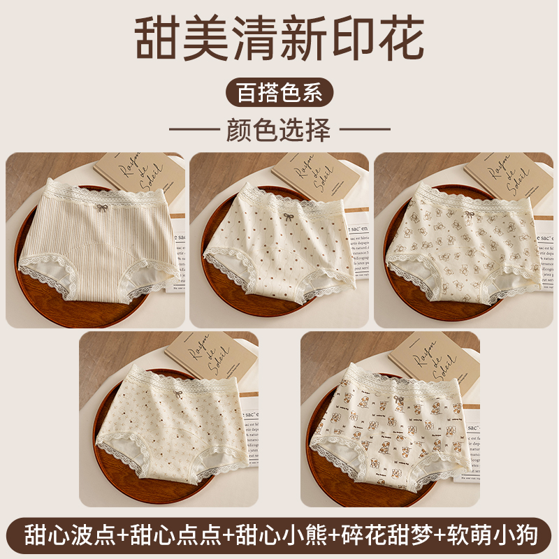 【7A】纯棉女士内裤印花纯棉中腰内裤中腰棉质内裤女士 L 淡雅绿