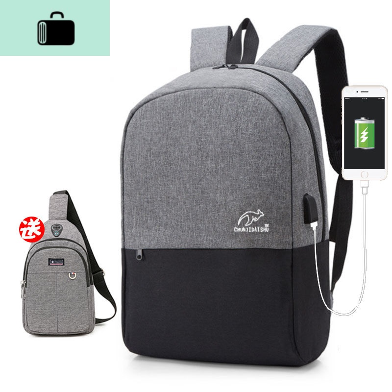简约双肩包男士旅行15.6寸苹果笔记本简约电脑背包初高中生书包女NEWLAKE 灰色带USB【送胸包】【带数据线】