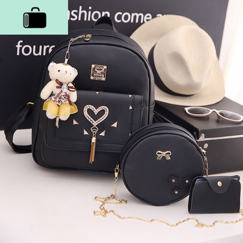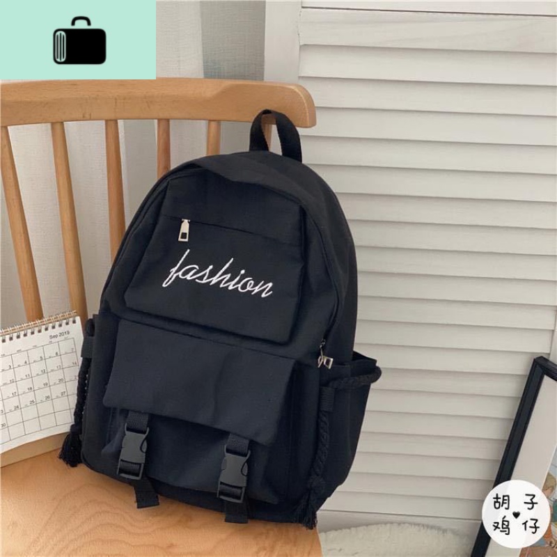 韩版流苏双肩包女2019新款少女士时尚校园书包软妹小清新旅行背包NEWLAKE 黑色三件套送小熊挂件