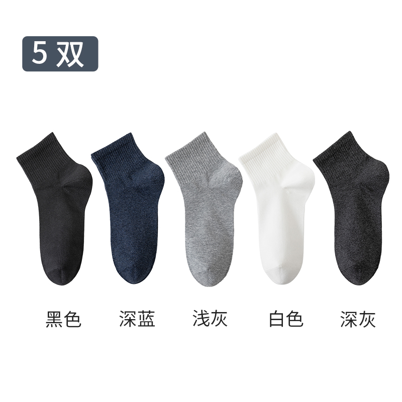猫人袜子男士春秋中筒袜纯棉运动休闲吸汗防臭透气商务袜【5双装】 均码【38-43码】 黑色+深蓝+浅灰+白色+深灰