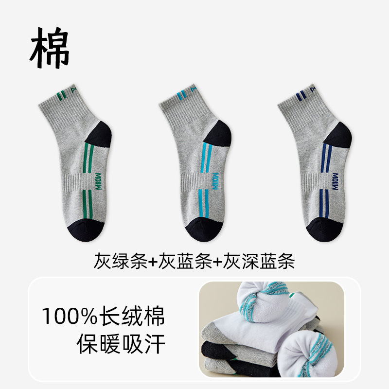 自营 猫人袜子男春秋季纯棉透气中筒男袜毛圈吸汗抑菌防臭运动休闲潮袜 39-45码 灰绿条1-灰浅蓝条1-灰深蓝条1