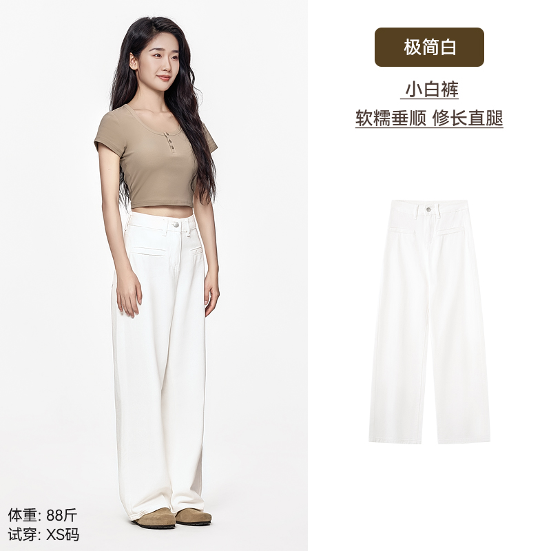 YIBUSHENG阔腿牛仔裤女小个子2023春秋新款高腰浅色美式高街学生窄版直筒子 XL 蓝色长裤