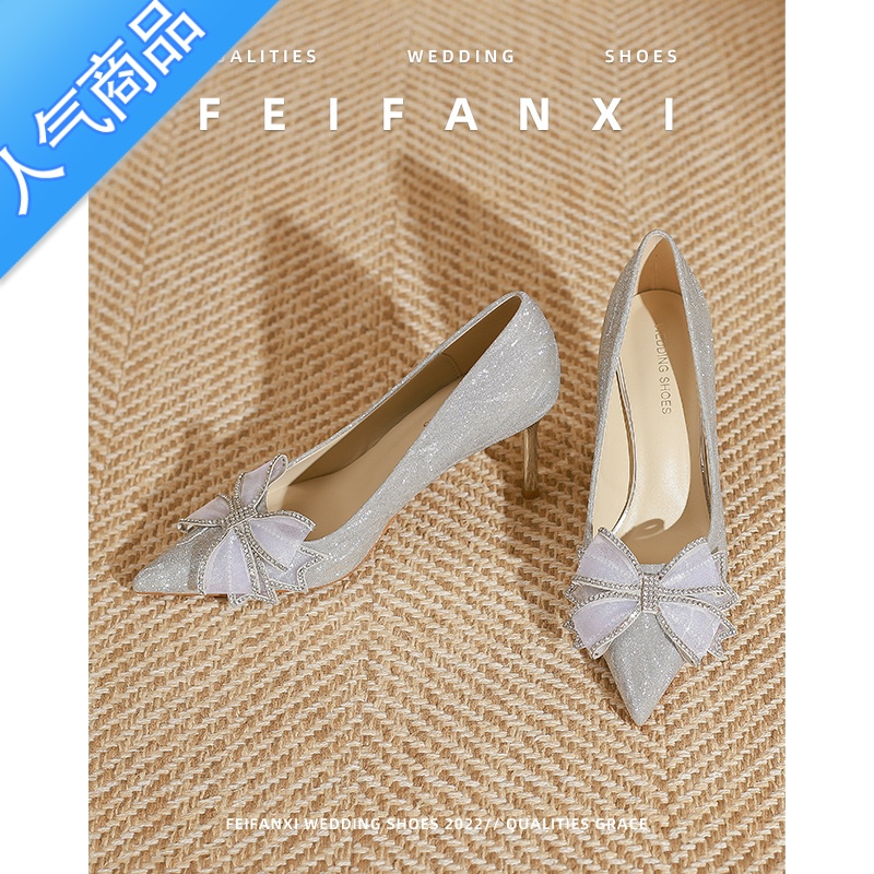 SUNTEK菲梵希2023年新款高跟鞋生日礼物女生水晶鞋秋季主婚纱婚鞋新娘鞋 银色年华6cm 38