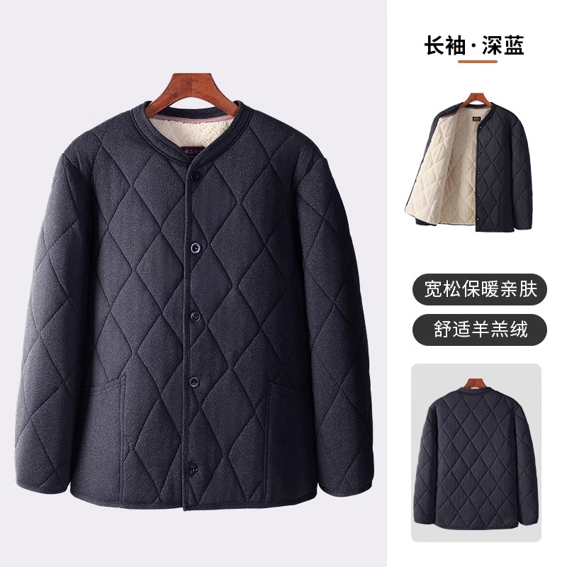 啄木鸟正品中老年人加绒加厚羊羔绒棉衣棉裤套装爸爸保暖防寒棉啄 1XL建议100斤-120斤) 蓝色羊羔绒单上衣