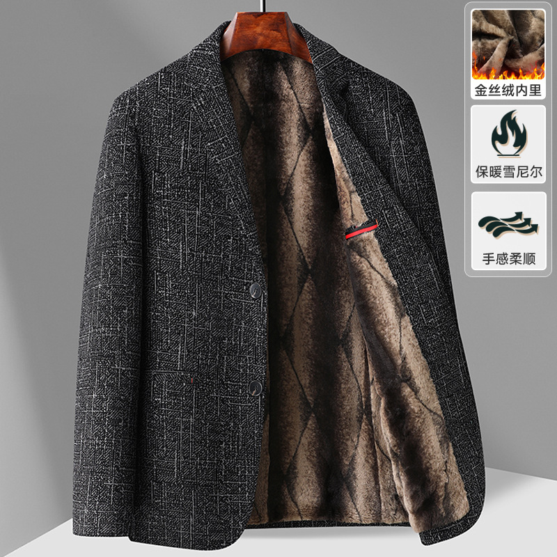 秋冬新款金丝绒保暖内胆男士休闲雪呢尔西服修身西装 170/M 深灰