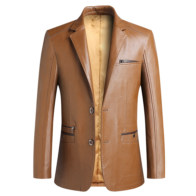 加大码春秋新款男式皮衣西装时尚免烫韩版休闲西服潮流外套男 6XL/205 黄色