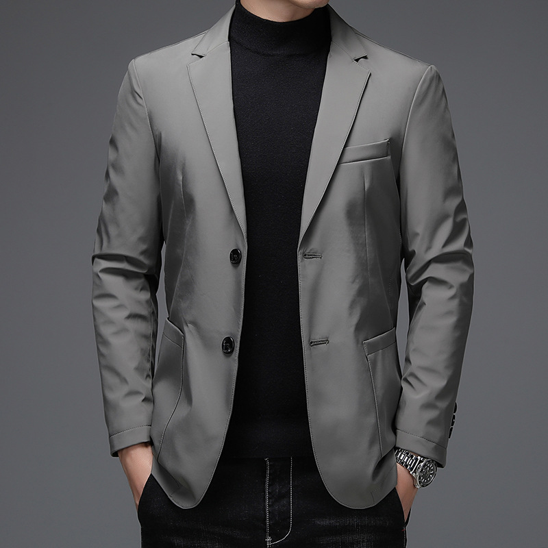 男士羽绒西装秋冬新款中青年休闲羽绒西服灰鸭绒男式保暖西服外套 170/M 卡其