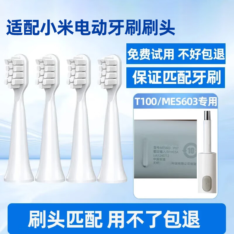 适配小米电动牙刷头米家声波T100替换刷头MES603软毛通用 清洁型白色12支装【T100专用】