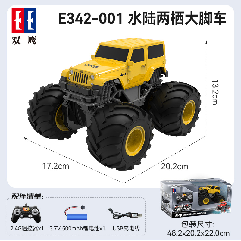 双鹰水陆越野车男孩赛车汽车儿童遥控车rc遥控汽车漂移车1663 官方标配丨单电池 【黄色】水陆两栖车E342-001