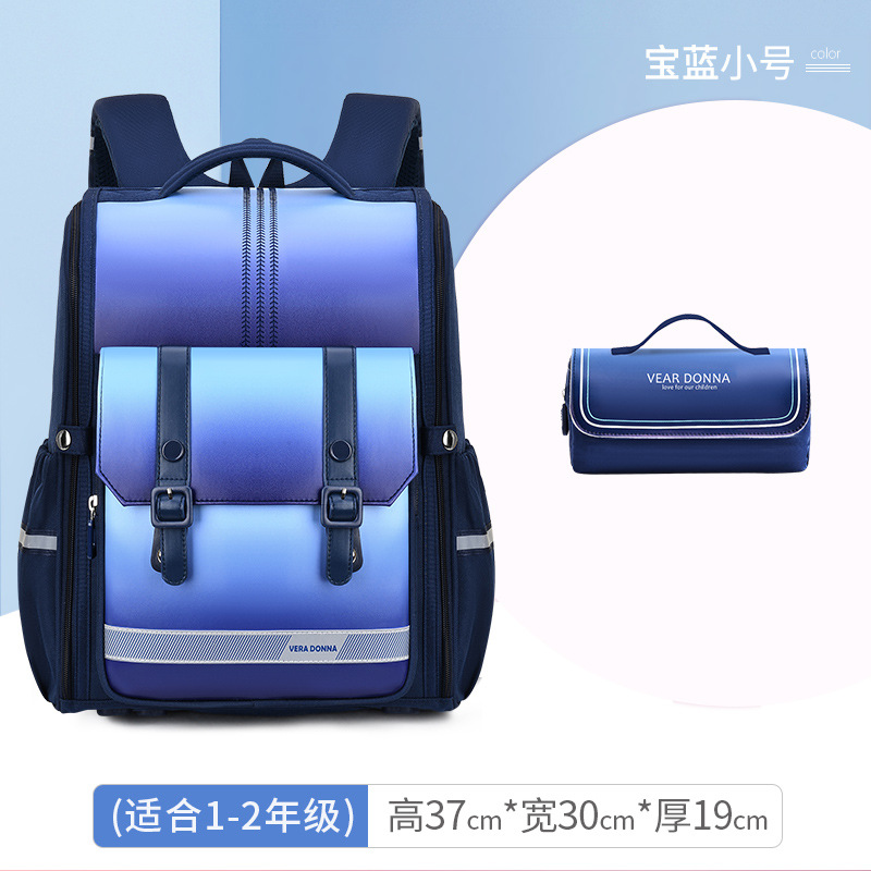 新款邵东工厂儿童小学生书包护脊防水牛津布大容量双肩包男女 宝蓝小号+笔袋