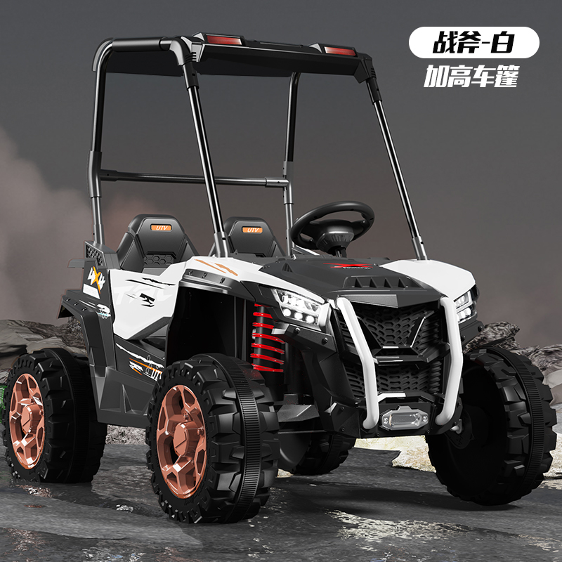 电动童车809四驱动儿童电动汽车2-10岁四轮电瓶车大电瓶带音乐可摇摆 白色+皮座12v12+车棚+EVA轮胎