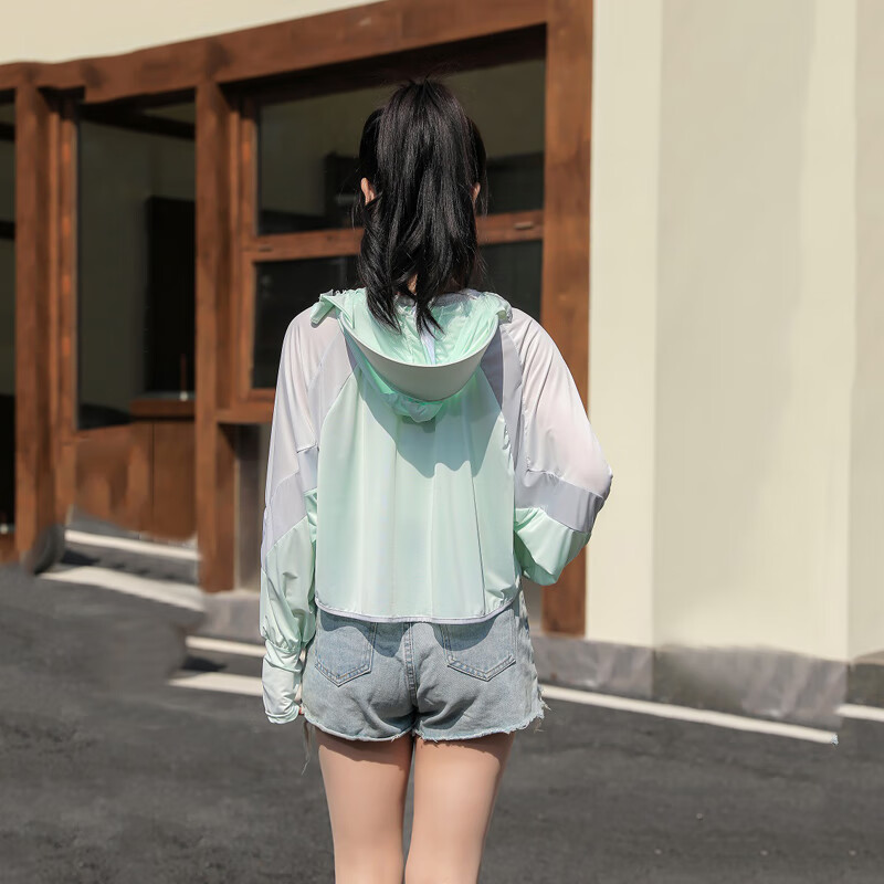 谋福 拼色防晒衣 大帽檐户外骑行斗篷款(冰丝款果绿拼色)