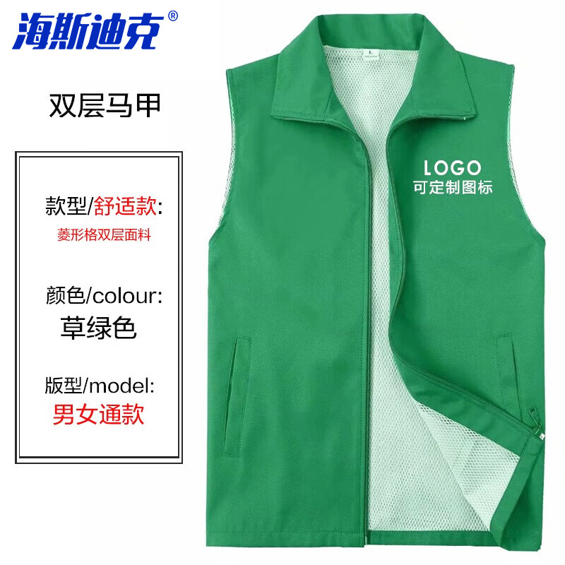 海斯迪克 菱形双层志愿者马甲 广告衫宣传背心超市义工公益团体活动可定制logo HKsq-365 草绿 L