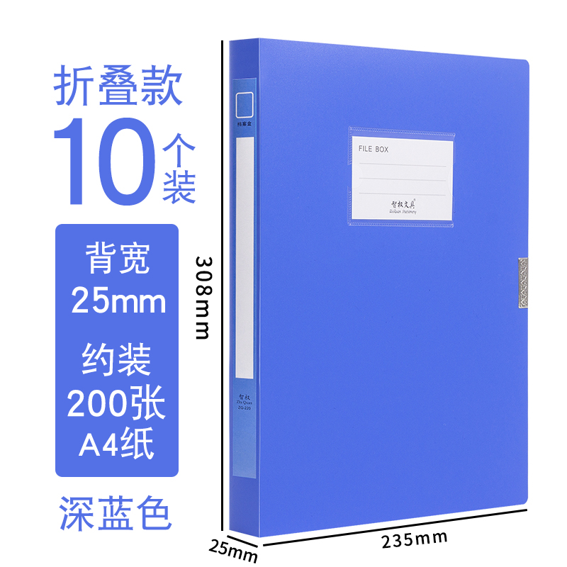 A4档案盒20个装文件资料盒折叠办公塑料文件盒大容量凭证收纳盒文件夹55mm资料盒办公用品大全可批发 【背宽25mm】-10个蓝色