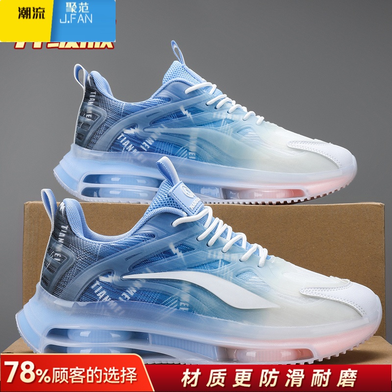 聚范莆田男鞋夏季透气薄款初中生减震跑鞋网面超轻网鞋跑步运动旅游鞋 天蓝升级款 35