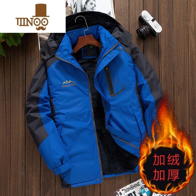 YANXU2022冬季防风防水冲锋衣棉服男加绒加厚工作服棉衣外套防寒棉袄厚 5XL建议180-195斤左右 防水款加绒加厚蓝色