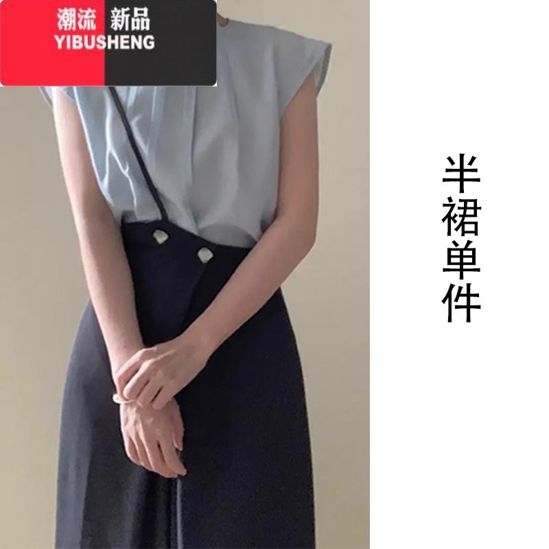 YIBUSHENG2024季新款小飞袖衬衫上衣半身连衣裙子设计感小众开叉包臀长叉 65/70kg/XXL 半裙单件冷淡系独特别致/钓系约会/上流社会/超火/大方得体/