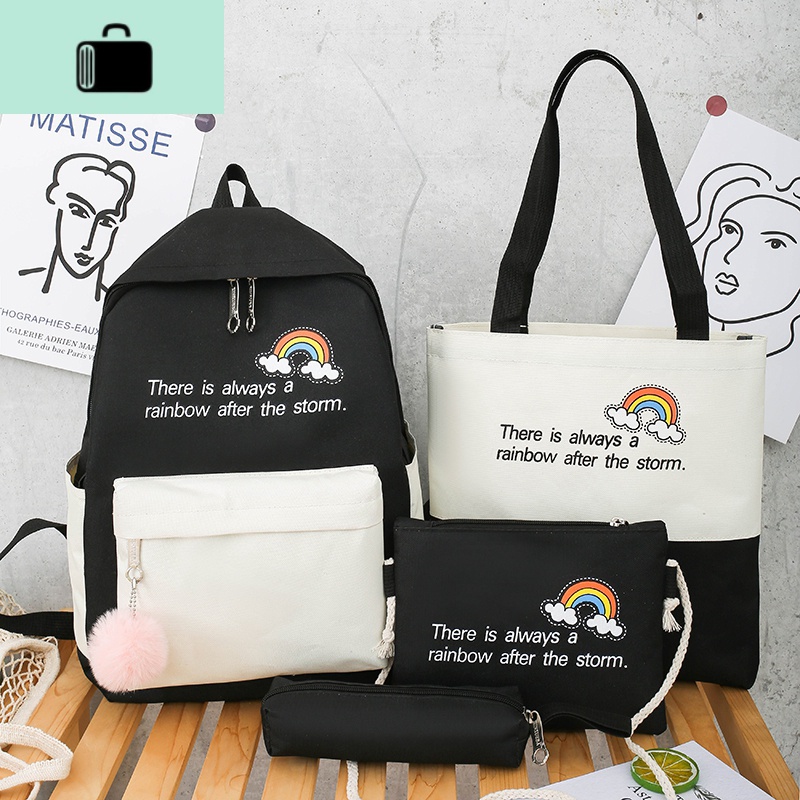 书包女中学生少女韩版高中帆布初中学生双肩包小学生校园百搭背包NEWLAKE 黑色彩虹