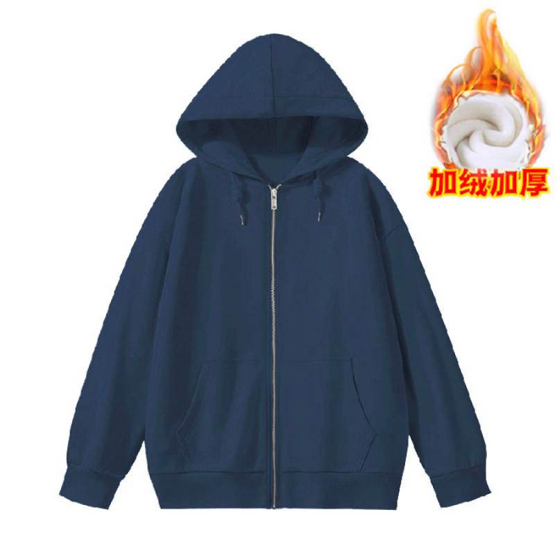 秋冬宽松韩版oversize灰色连帽薄绒卫衣女拉链外套女上衣 XXL 06藏青加绒
