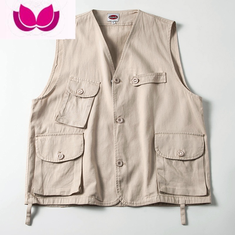 七斓美式复古宽松BF中性多口袋工装男女同款情侣马夹背心潮流无袖外套 米白色现货拍下发货 L