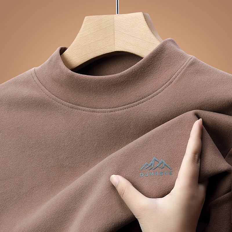 啄木鸟秋冬装上衣半高领德绒内搭保暖打底衫男长袖t恤中领卫衣冬 180/2XL建议150-165斤 XH-101卡其