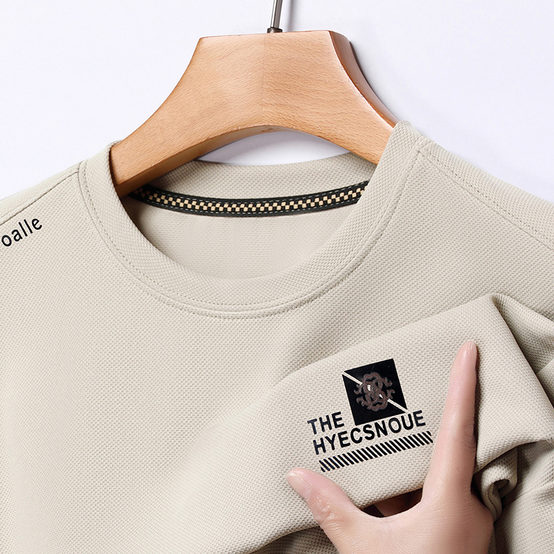 啄木鸟高档卫衣男加绒加厚冬季新款圆领长袖t恤中年男士保暖上绒 180/2XL建议150-165斤 长袖薄款7788米色