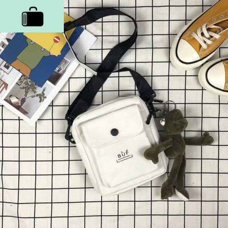 斜挎包男单肩包潮流学生休闲帆布背包男生潮牌包包ins潮小包轻便NEWLAKE 白色+青蛙