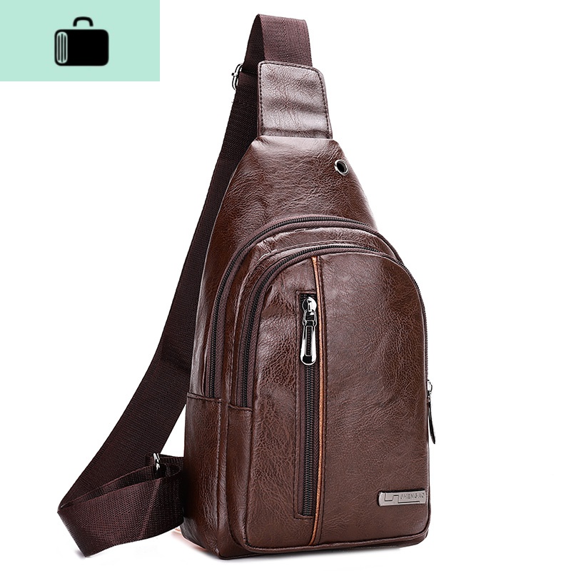 胸包男新款商务休闲运动男士胸前包百搭轻便旅行男单肩斜挎包背包NEWLAKE 咖啡色款二925