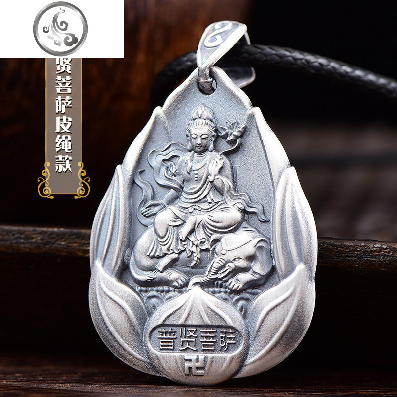 S999纯银吊坠十二生肖足银大日如来阿弥陀佛女项链男士挂坠_116 属龙蛇-普贤菩萨-皮绳款