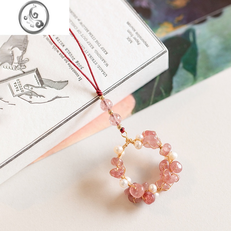 JiMi草莓晶水晶手机挂件粉晶桃花吊坠小饰品女ins挂饰钥匙扣链 双珠款