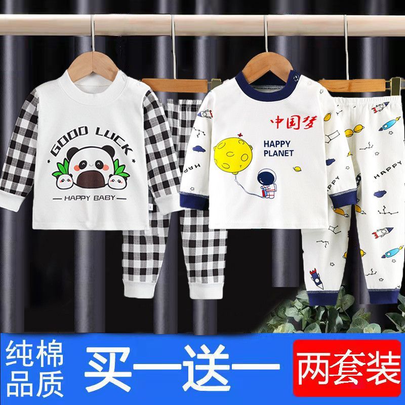 2套装儿童棉内衣秋衣秋裤秋衣套装男女童婴儿a类春秋款童装_538 110适合28-33斤 2套装-方格熊猫+中国梦