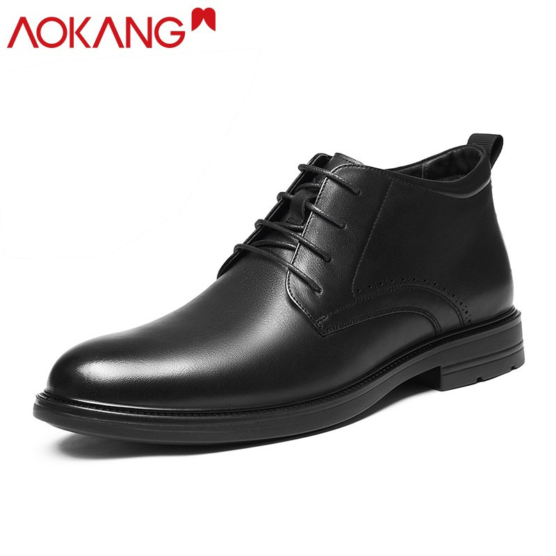 奥康棉鞋冬季加绒保暖男士高帮皮鞋休闲棉皮鞋爸爸鞋商务鞋 男 黑色 37