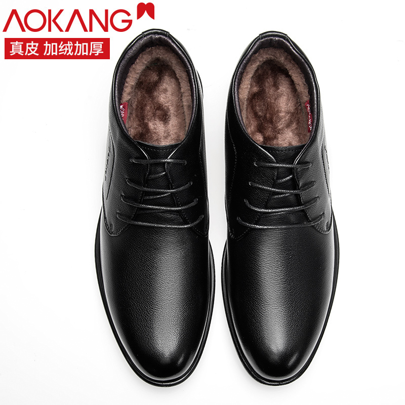 奥康棉鞋男商务正装皮鞋2021冬季新款保暖加绒舒适牛皮鞋子 黑色 42