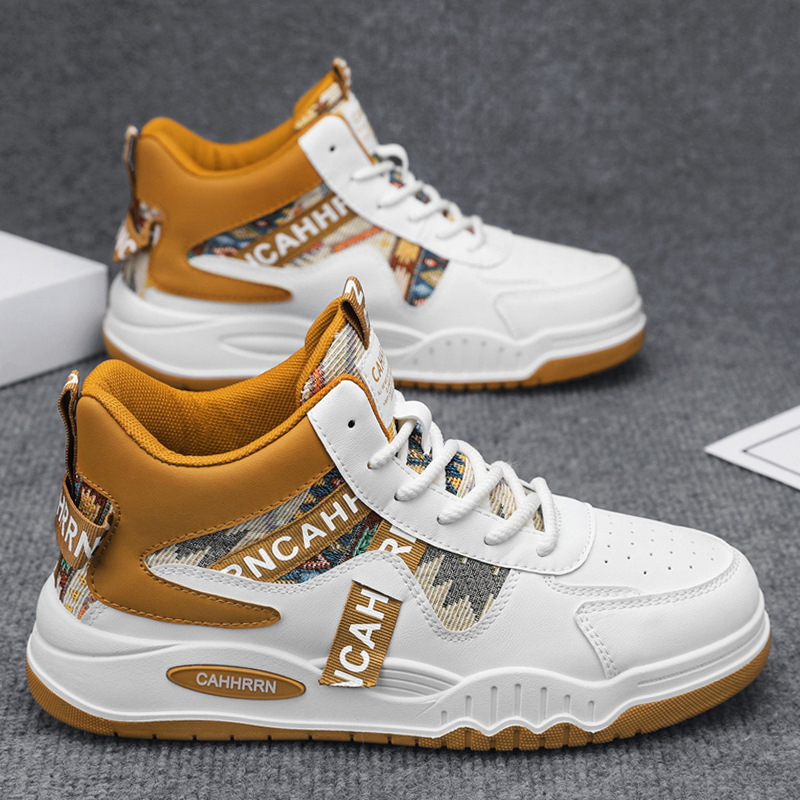 冬季男款高帮男鞋时尚百搭加绒保暖棉鞋厚底防滑运动老爹鞋男 L-C39白黄 43