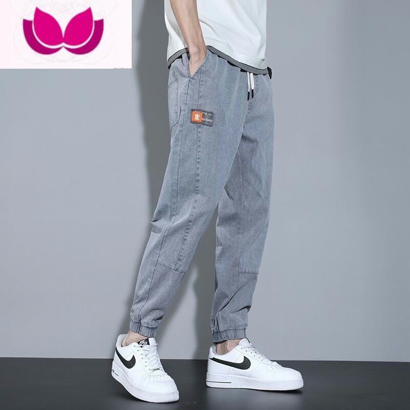 YANXU松紧腰牛仔裤男士弹力哈伦2023年青年新款宽松百搭休闲九分裤 5XL建议180-200斤 K433灰色