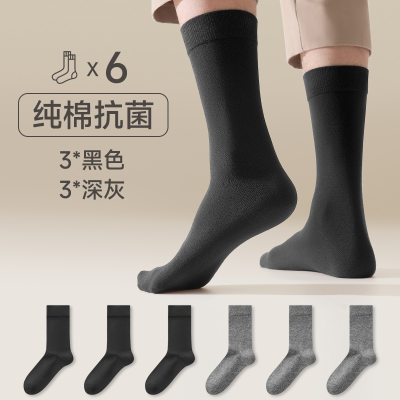 恒源祥袜子男士夏季长筒纯棉长袜黑色薄款运动袜全棉高筒夏天男色 6双纯色筒长30CM3黑3深灰 均码纯棉抗菌/四季可穿/30天内穿破包赔收藏+加购=优先发货