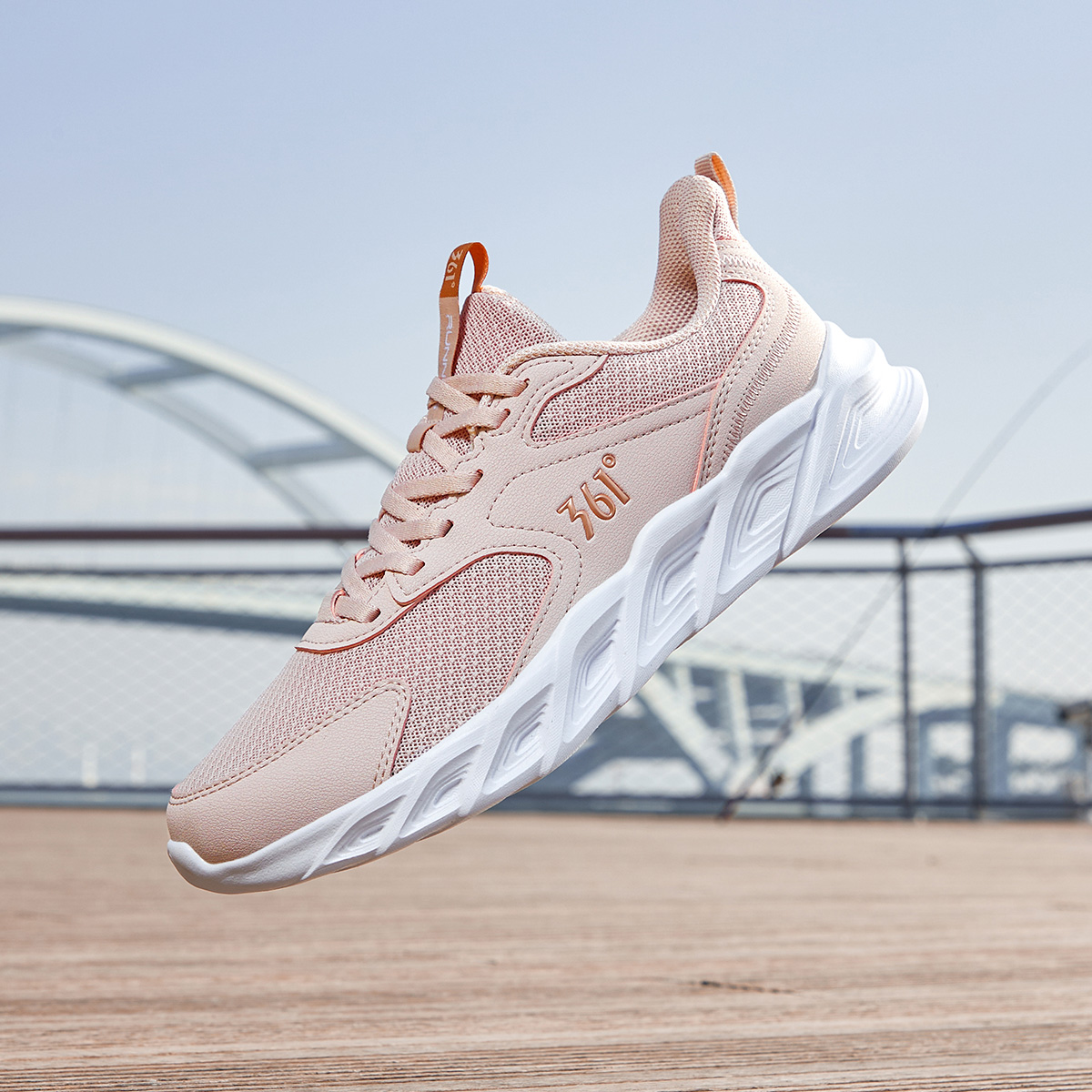 361°女鞋运动鞋新款网面舒适跑鞋轻便软弹跑步鞋女 清新粉/亮古铜 39码
