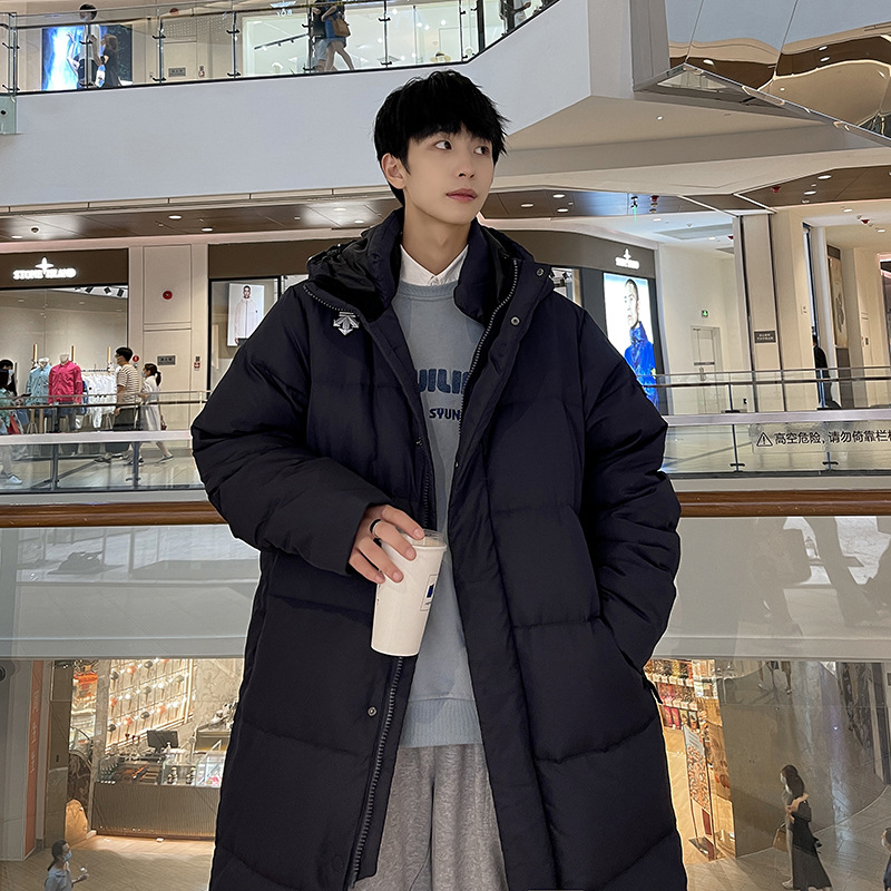 JPDUN男士羽绒服秋冬情侣同款长款过膝羽绒服男中戏女宽松休闲保暖外套女_257 L 215蓝色男