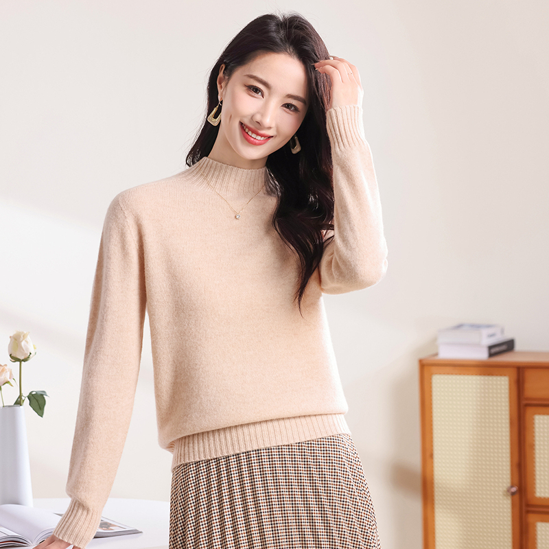 【100%羊毛】恒源祥圆领羊毛衫女2024新款基础打底毛衣套头针织衫 170/92A/L 杏色