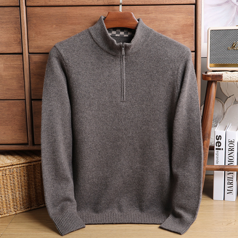 细软100%山羊绒纯色拉链半高领男士羊绒衫加厚480g保暖打底羊绒衫 L 拿铁咖