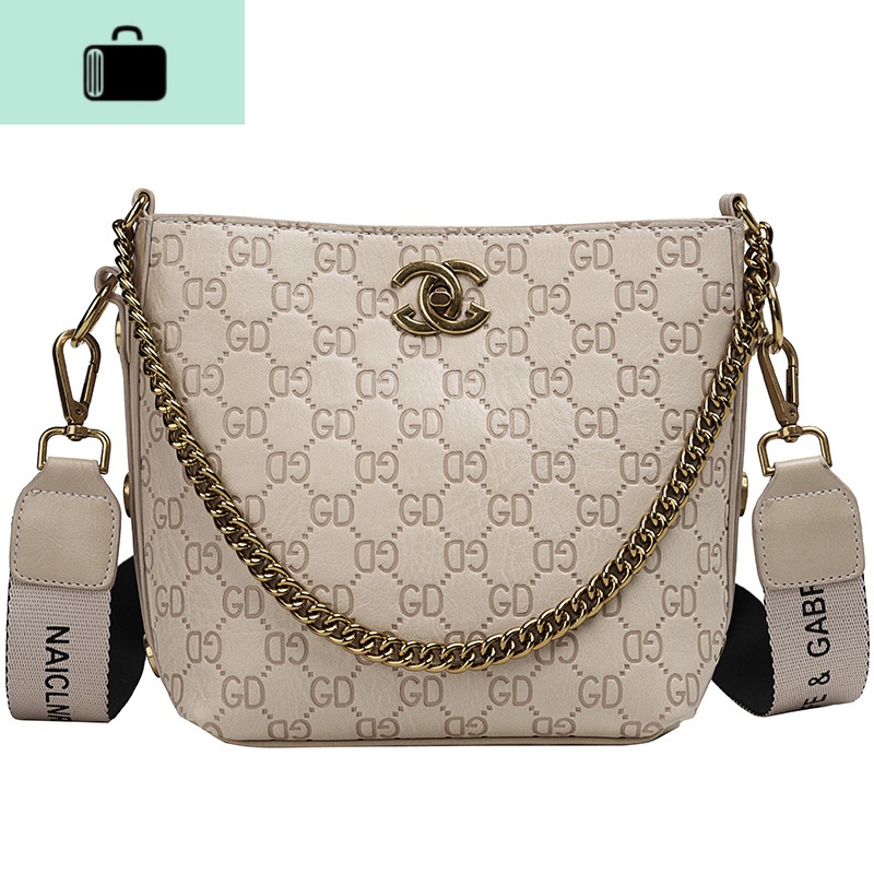 春夏上新质感包包女2020新款网红水桶包女时尚百搭宽带单肩斜挎包NEWLAKE 米白色