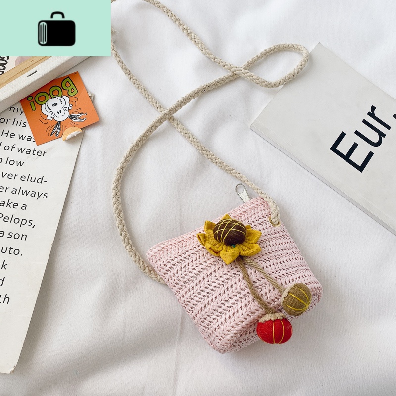 女童斜挎包可爱小女孩公主时尚洋气宝宝迷你小包包儿童手工编织包NEWLAKE 向日葵款粉色